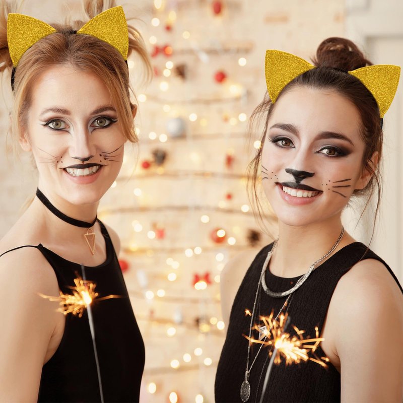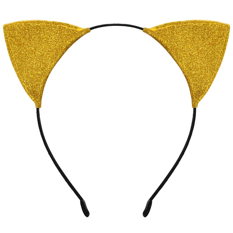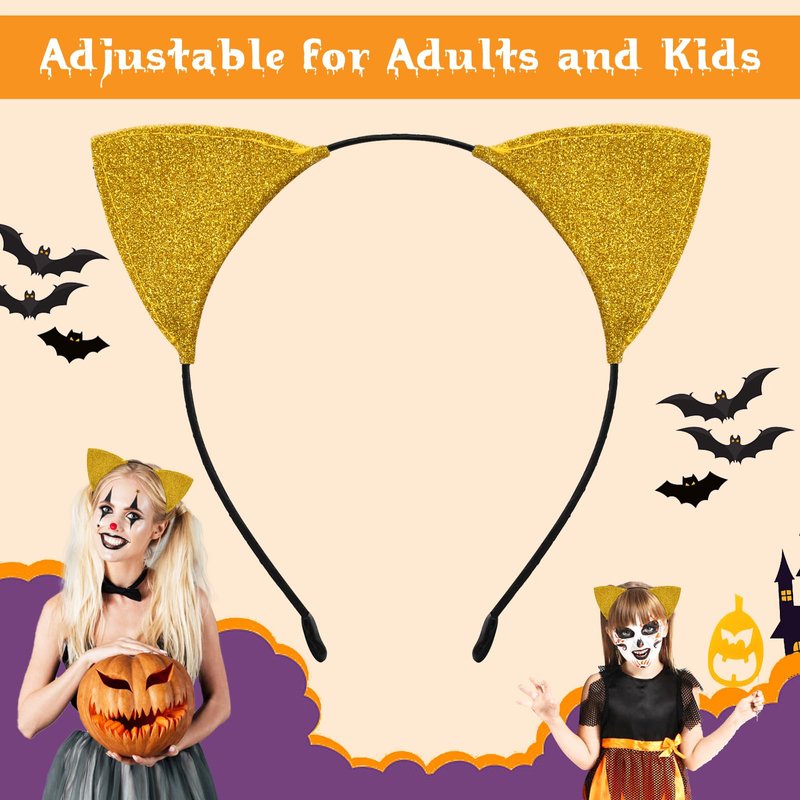 Cat Ears Headband for Women Girls - Cute Sparkle Glitter Hairband Halloween Cosplay Cat Costume Hair Accessories for Adult Kids Birthday Daily Wear Gold