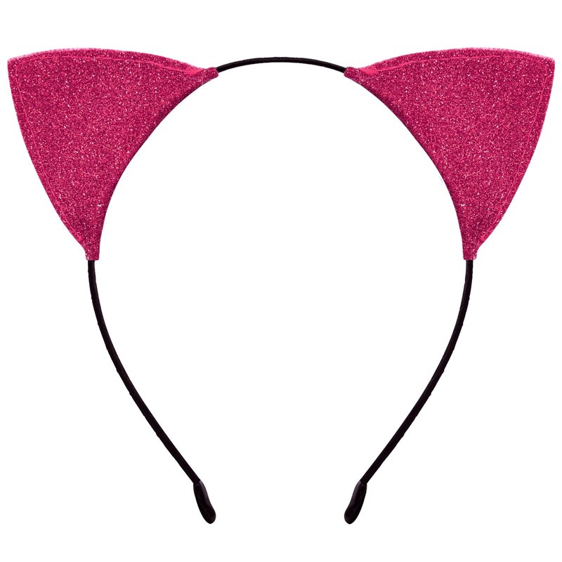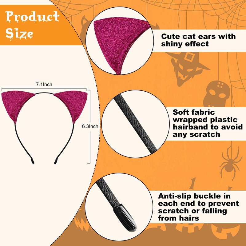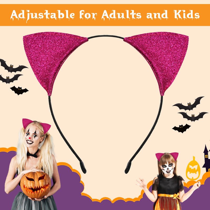 Cat Ears Headband for Women Girls - Cute Sparkle Glitter Hairband Halloween Cosplay Cat Costume Hair Accessories for Adult Kids Birthday Daily Wear Rose Red