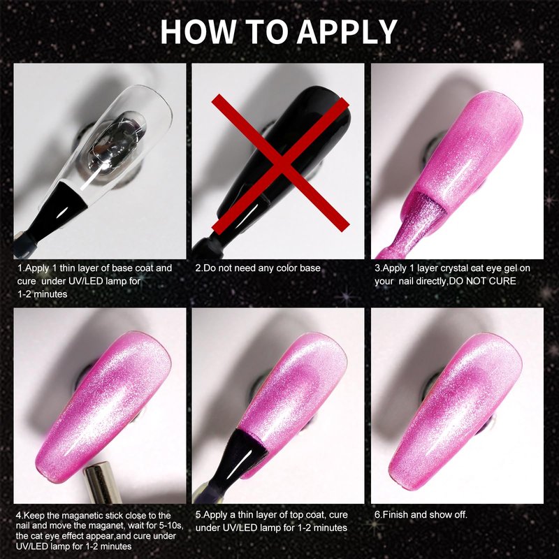- UV Gel Polish- Cure under LED/UV light for 1-2 minutes. Base and Top coat required(not included in the package).