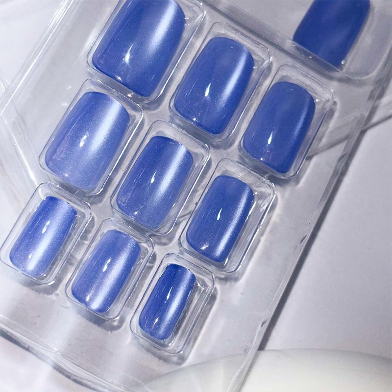 - 【Square Press on Nails】There are 24 blue nails press on in one pack,Beautiful and cute short press on nails glossy false nails comes with has 12 different sizes,you can chose them to be polished to the most suitable size,it fits any finger perfectly.