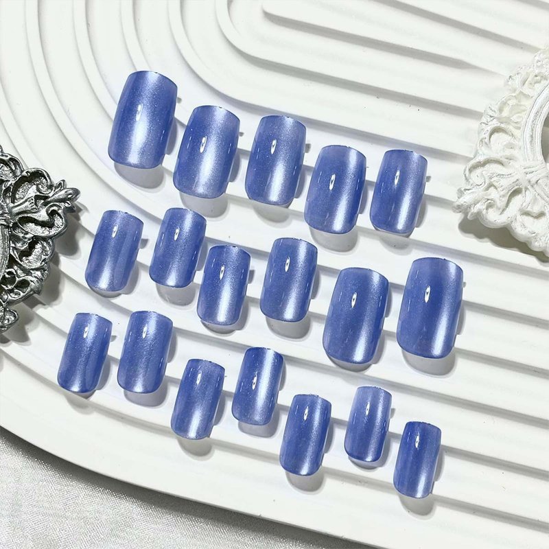 - 【Easy to Use】Cat eye acrylic fake nails just choose the nail piece that suits you,polish the nail bed,stick the jelly glue we give away on your nails,then press the short square fake nails on the nails for 30 seconds to get the natural manicure that girls love.
