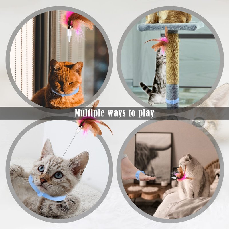 - Premium Material: The collar is made of quality silicone, soft and lightweight, it will not harm your cat or make it feel uncomfortable, sturdy, withstands cats' teeth and claws great. The wand is made of thickened steel, elastic,sturdy but flexible.Feather for safe and comfortable fit.