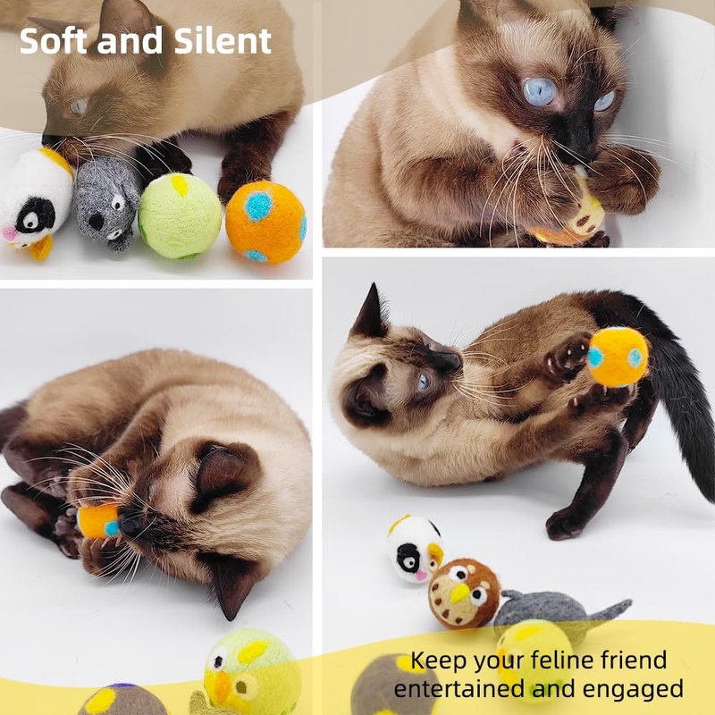 Cat Toy Balls 100% Wool Handmade Soft and Durable Bird Mouse Variety Pack 6 Pcs for Indoor Cats Kitten Entertainment Chase Hunting Exercise Cat Kicker Hide and Seek Mousing Catching Game (B)