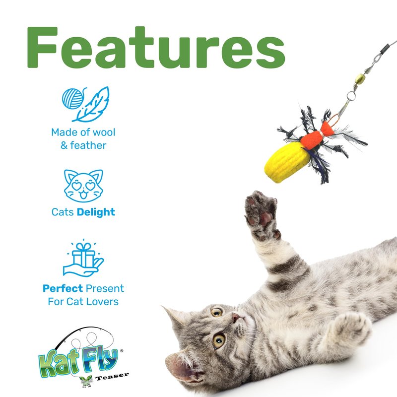 Great exercise for your cat! A fun attachment for your cat teaser wand. These Beetle Kat Fly Teaser bounce around on your teaser wand like your other attachments. Fun for all! We always recommend supervised play with these toys.