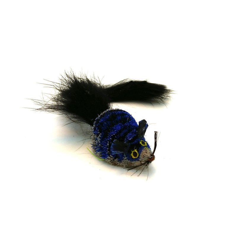 - Blue Striped mouse KatFly cat toy with a Real rabbit Fur tail. Mouse body is about 1.5 inches long