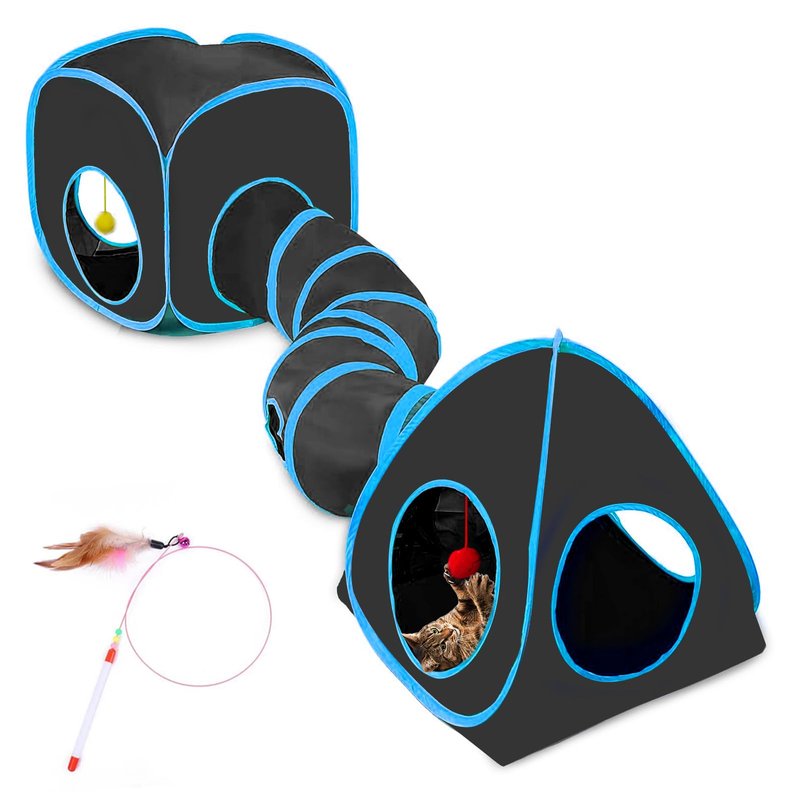 - 【3-in-1 Design】This cat toy set includes a cat cube, a cat tunnel, a cat tent, a feather cat toy, and a convenient handbag. It is an upgrade to the traditional cat tunnel and is also very easy to use. You can also bring it outdoors or on a trip to provide a place for your cat, rabbit, guinea pig, and puppy to rest and play.