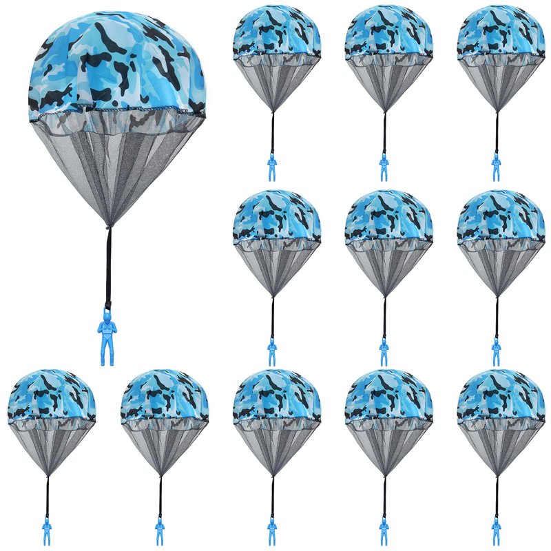 Catcan 12 Pcs Parachute Toy, Camo Blue Parachute Men Toy Tangle Free Throwing Hand Throw Outdoor Flying Gifts Paratrooper Toy No Battery nor Assembly Required (Blue)