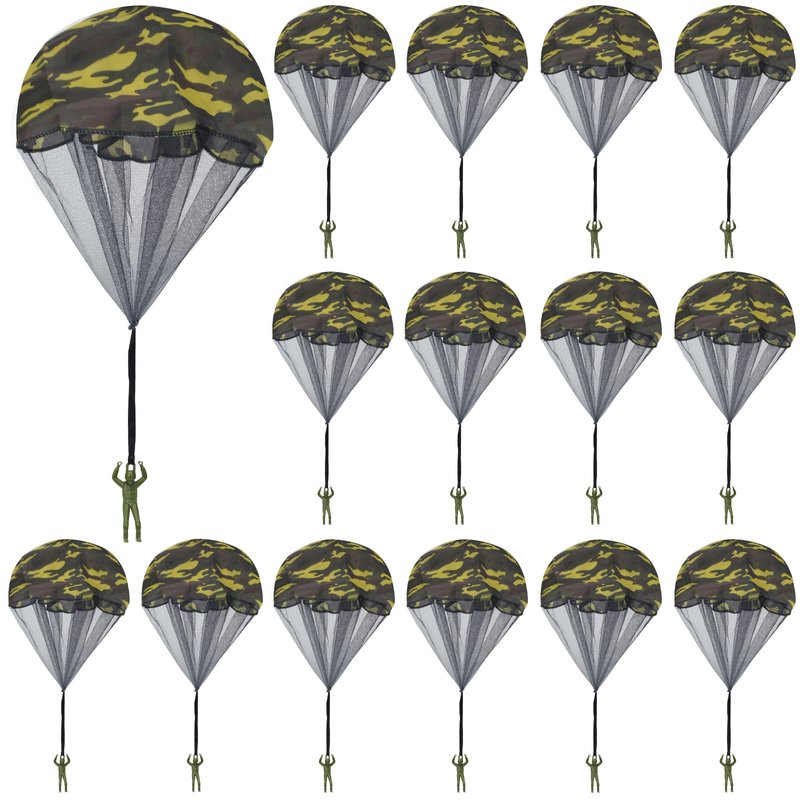 - 【Size and Bright Color】The package includes 10 camo hand throwing parachute toys. The parachute diameter is 16.9 in / 43 cm when unfolded, and the parachute army man length is 3.74 in / 9.5 cm, suitable for both adults and children, adding more fun to the game. Suitable for people over 15 years old.