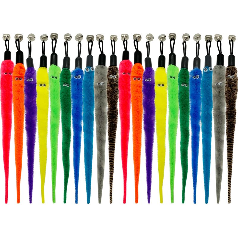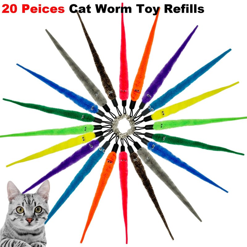 - 1.Great Value Cat Toy worm Refills: Include 20 pieces colorful worm toy replacement, Used on any interchangeable cat wand and chaser toy with an eye hook connector, It can be used for a long time for your cats to play. Now you don't have to keep buying wands when all you need is a new attachment