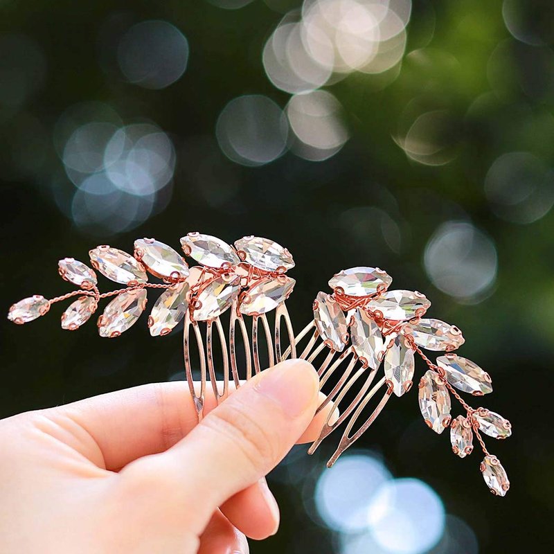 Catery Bride Wedding Hair Comb Rhinestones Braid Headpieces Bridal Hair Accessories for Women and Girls Pack of 2 (Rose Gold)