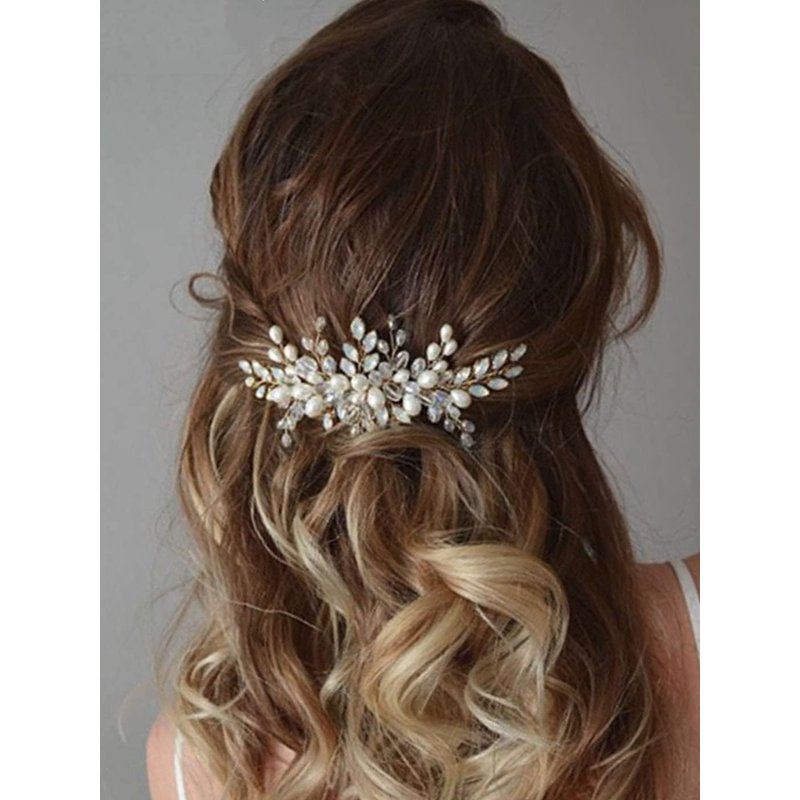 - Wedding hair pieces for bride and bridesmaids are made of Rhinestones,Pearl and Comb,available in silver.