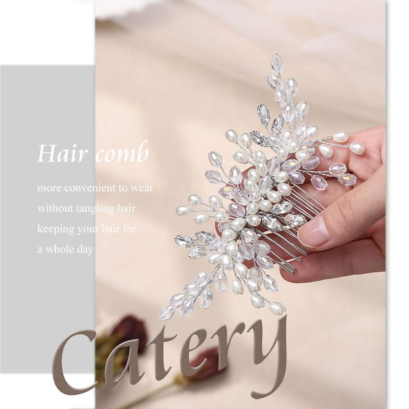 Catery Crystal Bride Wedding Hair Comb Pearl Hair Jewelry Headpieces Women Side Combs Hair Piece Bridal Decorative Hair Accessories for Women and Girls