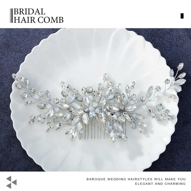 Catery Crystal Bride Wedding Hair Comb Silver Rhinestones Hair Clip Bridal Side Combs Hair Piece Opal Headpiece Hair Accessories for Women and Girls (A Silver)