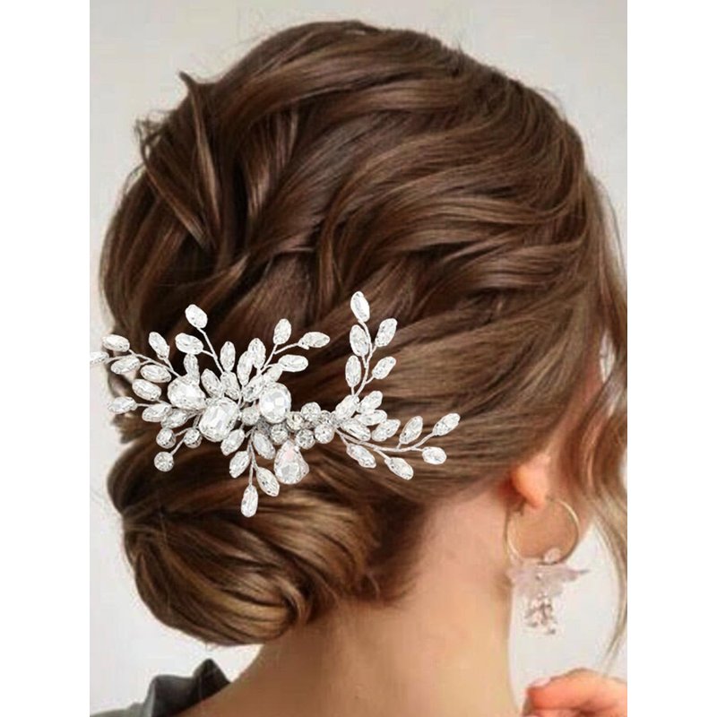 - Wedding hair piece for bride and bridesmaids are made of Rhinestones and Comb.Color: Silver.