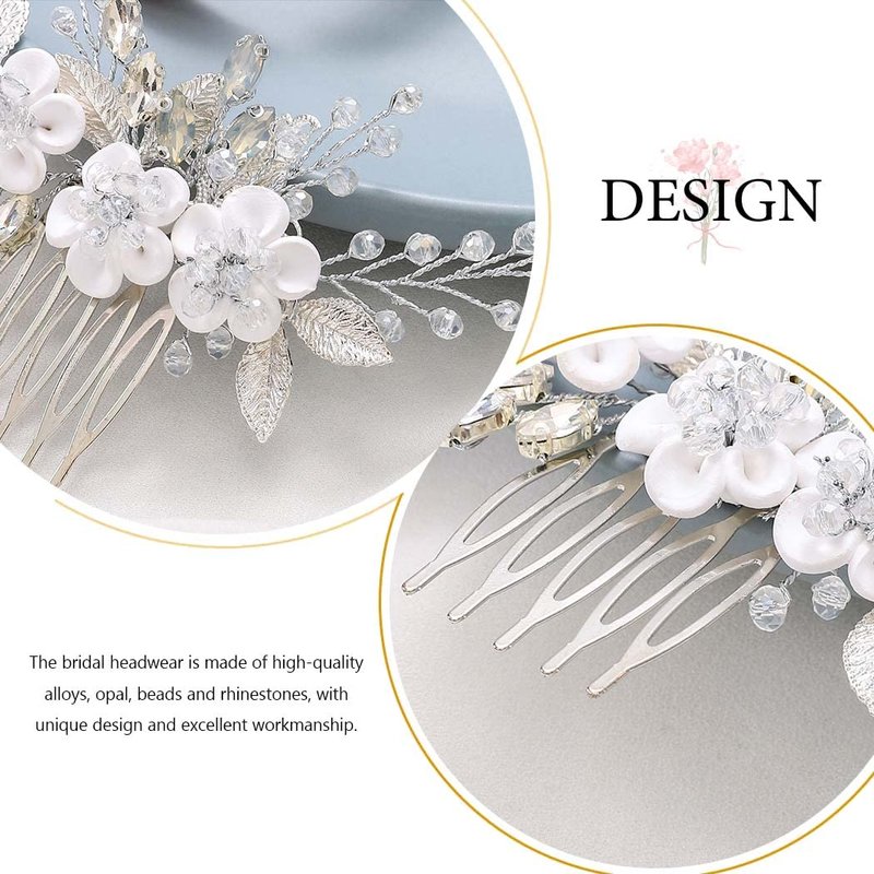 Catery Flower Bride Wedding Hair Comb Bridal Hair Pieces Bride Rhinestones Hair Jewelry Opal Headpieces Bead Side Combs Decorative Hair Accessories for Women and Girls (A-Silver)