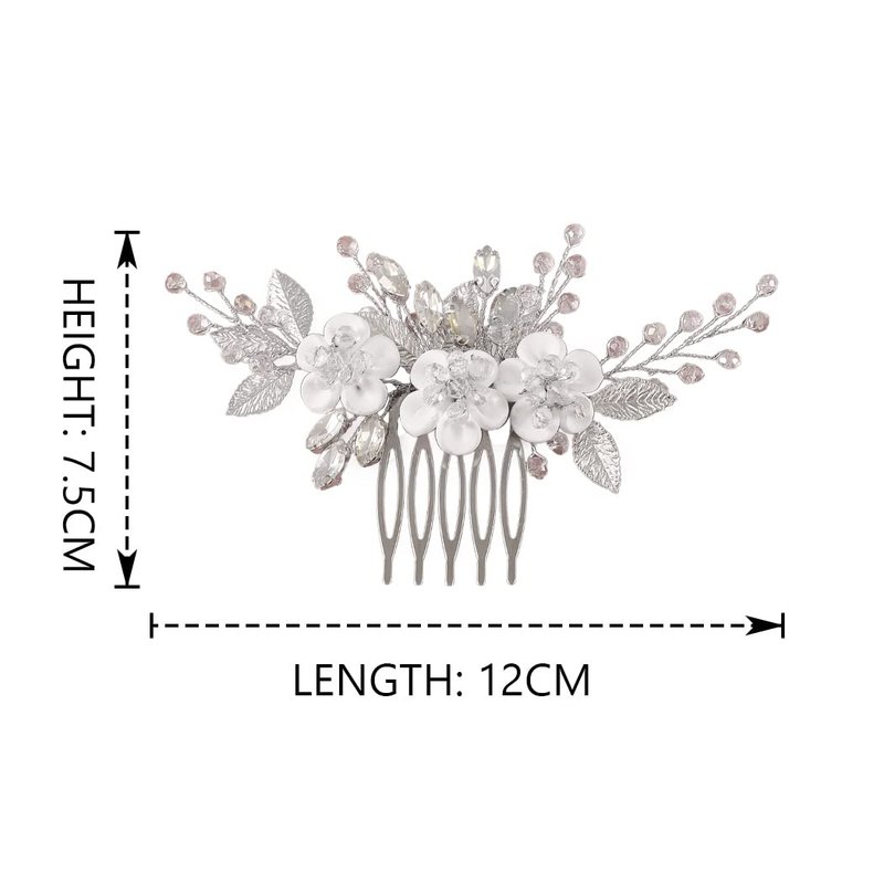- Hair accessories for wedding are the size of height 2.9in/7.5cm, length 4.7in/12cm.The branches are adjustable, and the shape of the comb can be adjusted to suit your hairstyle