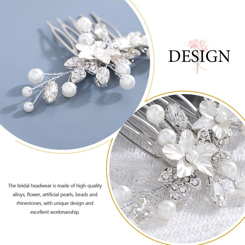 Catery Flower Bride Wedding Hair Comb Pearl Crystal Side Combs Leaf Bridal Hair Piece Clips Hair Accessories for Women and Girls