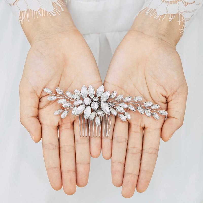 - Silver hair accessories is made of rhinestone crystal and alloy with unique design and excellent workmanship.