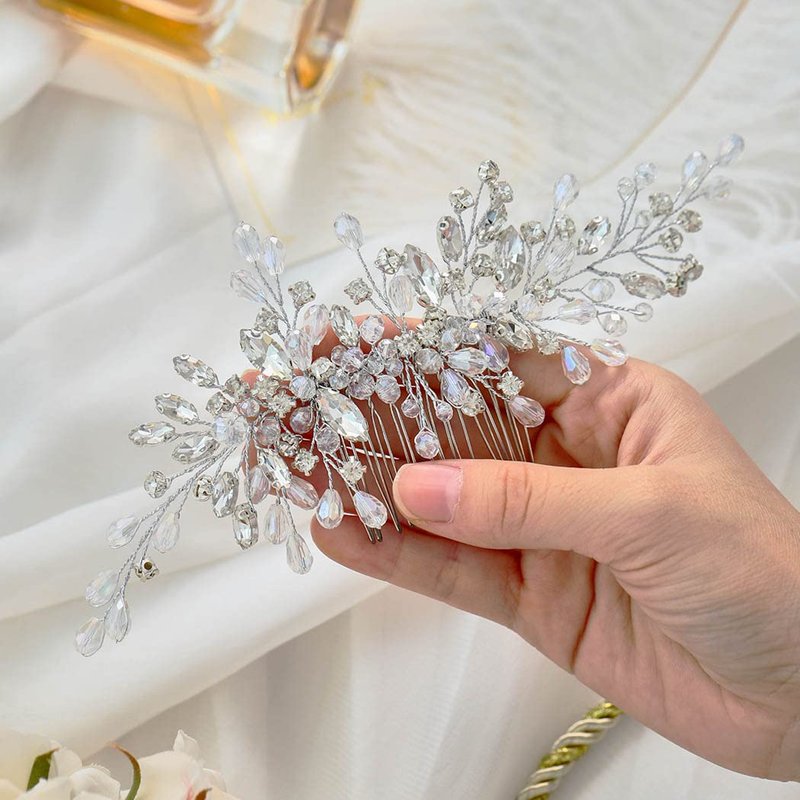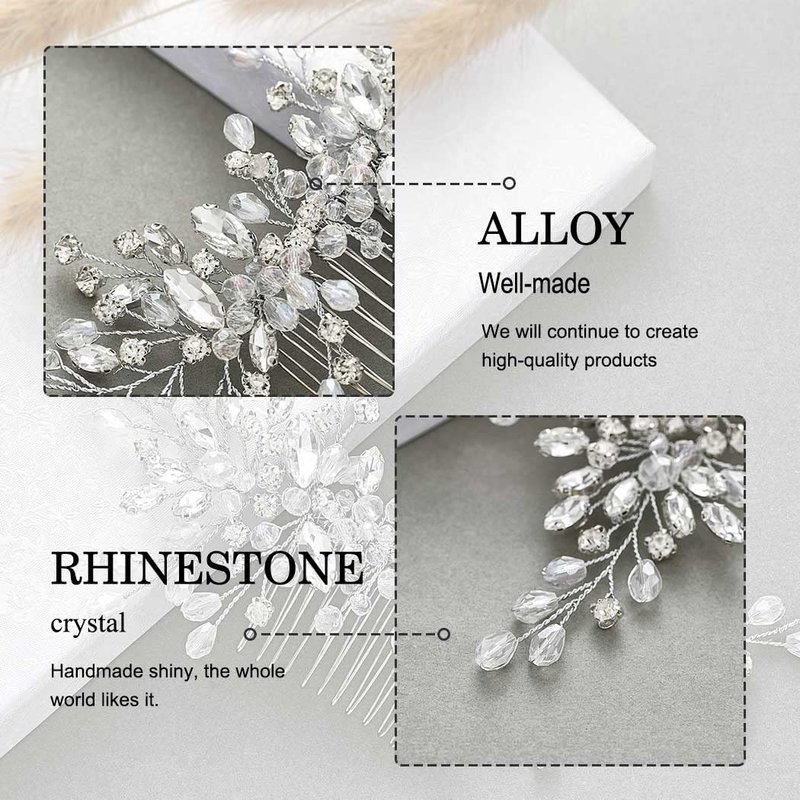 - Crystal hair comb for wedding party,evening and any other special occasions.The products' color may have slight color difference from the listing picture.
