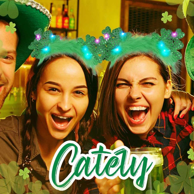 Catery St Patrick's Day Headband Led Cat Ears Headbands Feather Shamrock Hairband Irish Green Shamrock Party Hair Accessories for Women and Girls