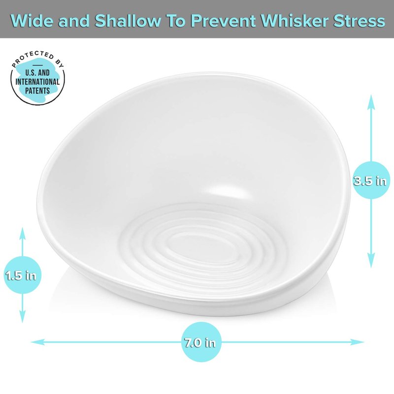 - ⭐️ PRACTICAL AND PRETTY. Patented design with raised backside to prevent food from spilling. Wide enough to provide whisker relief and stress-free mealtime. Includes non-slip silicone mat.