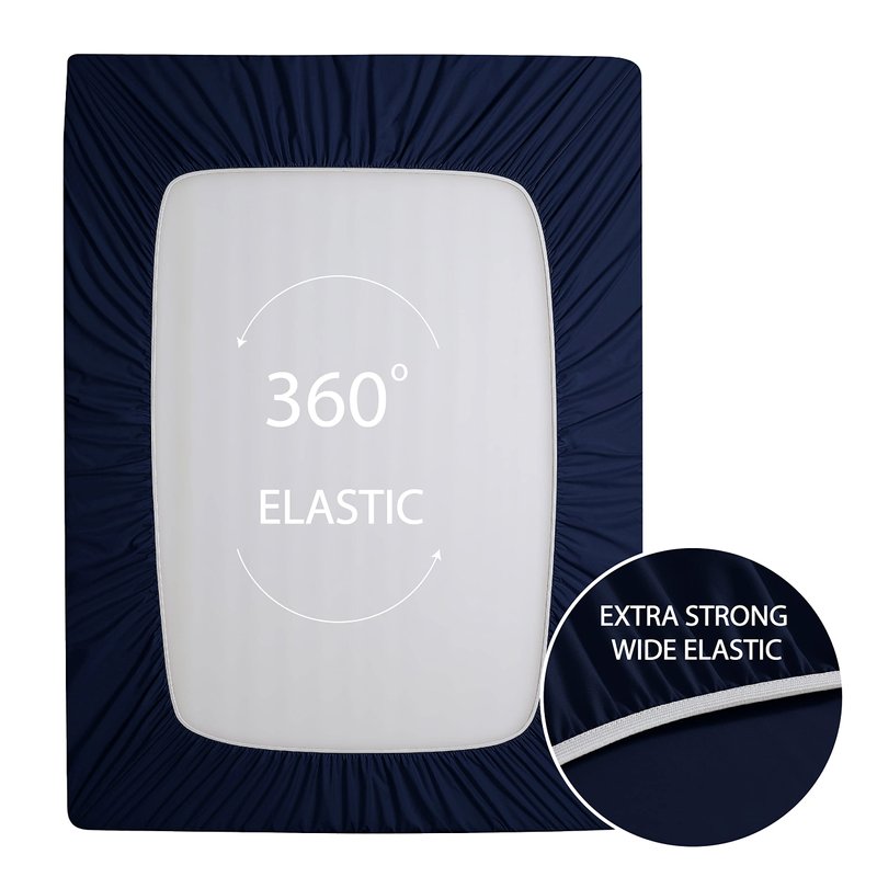 Cathay Home Luxury Wrinkle And Fade Resistant Double Brushed Ultra Soft Microfiber 14-inch Standard Pocket Single Fitted Sheet, Navy Blue, Full