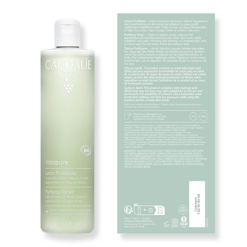 Caudalie Vinopure Natural Salicylic Acid Pore Minimizing Toner, 6.7 Ounce