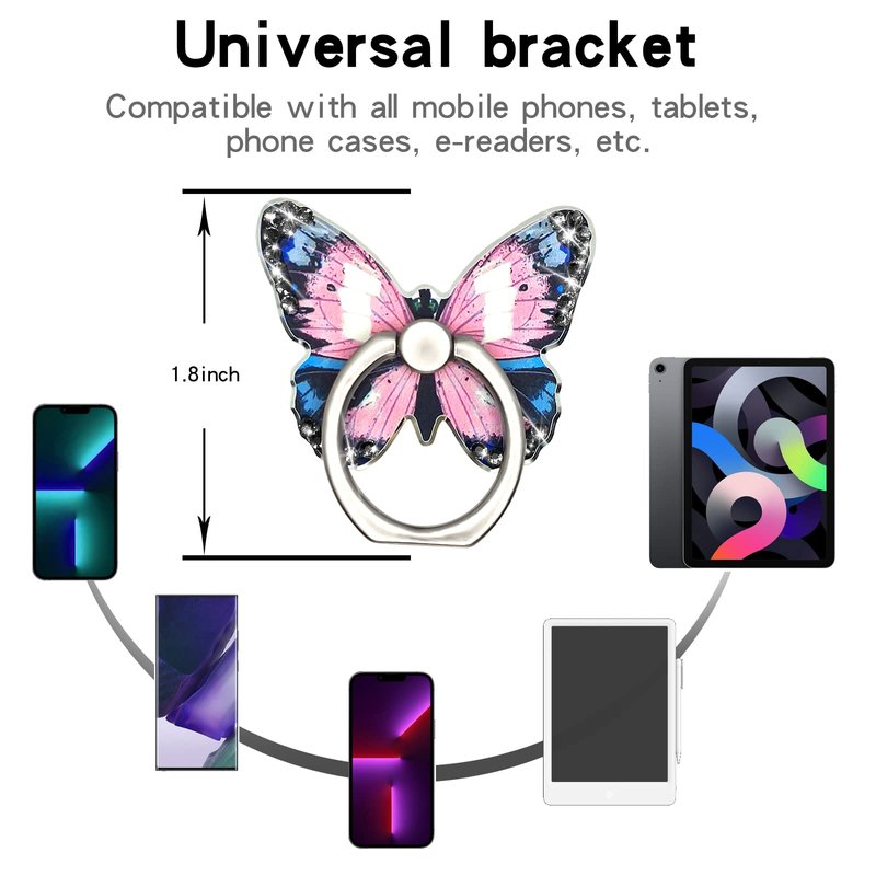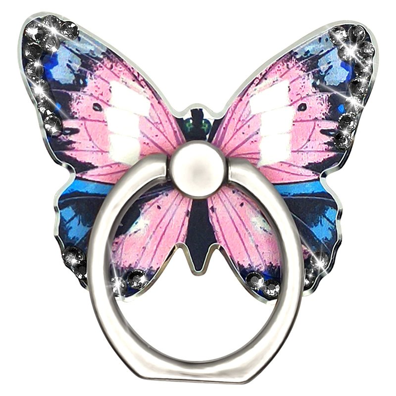 Cavdycidy Bling Metal Cute Butterfly Cell Phone Ring Holder 360°Rotation Finger Stand Kickstand Universal Compatible with All Smartphone(Diamond Blue)