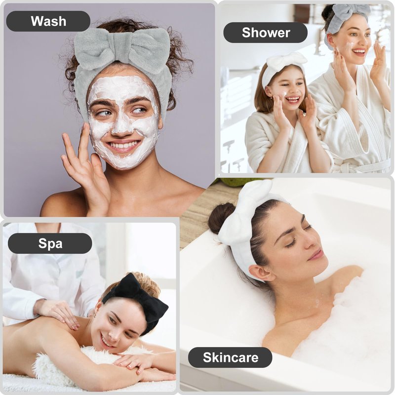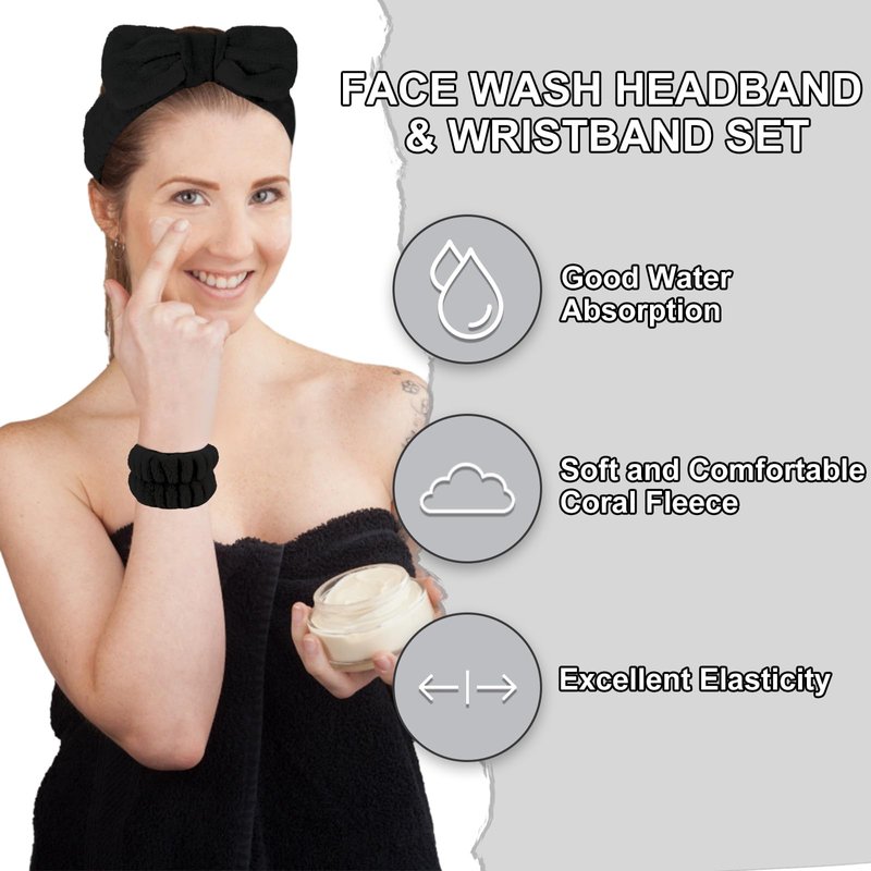 - 【Face Headband with Bow】The cute bowknot design makes you look cute and sweet. The hair holder for washing face keeps hair from falling in front of your face and provides a dry barrier for your hair while you wash your face, as does a wrist strap that keeps liquids from splashing on your arms.