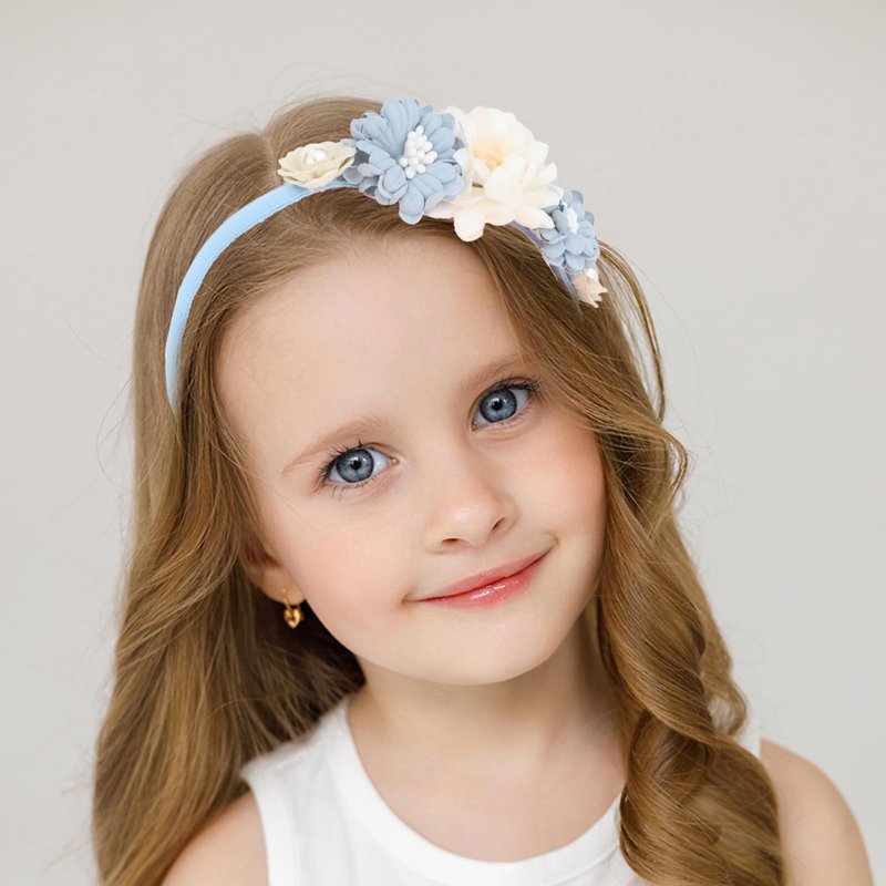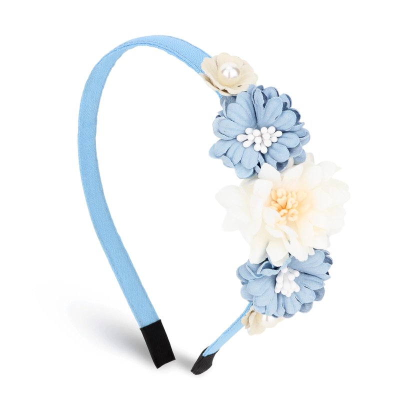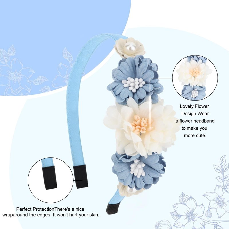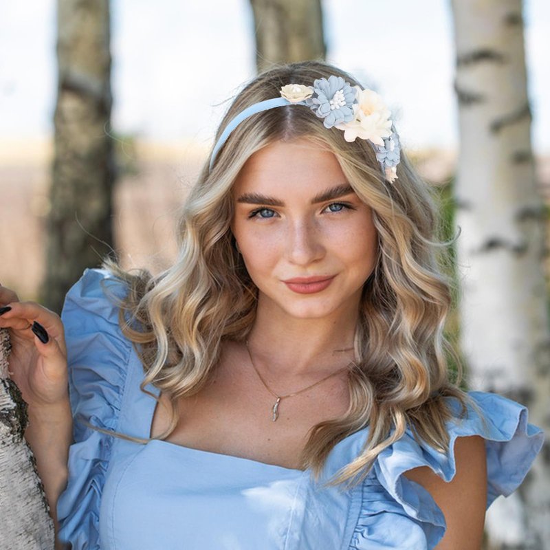 CAVETEE Flower Headband for Women, Hair Accessories Flower Headpiece for Holiday and Special Occasion, White and Blue Flowers Hair Band for Party Prom Weeding