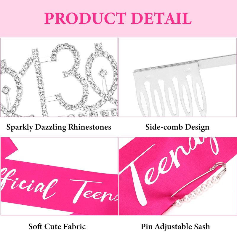 "Official Teenager” Sash + Rhinestone Tiara Gifts Set.