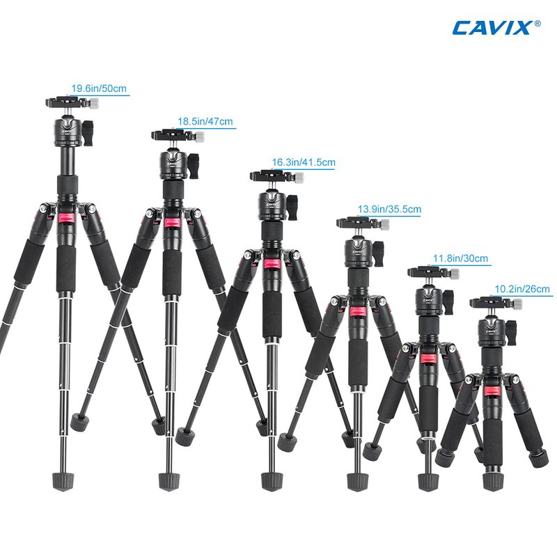 - ·SOLID CONSTRUCTION: The CAVIX tabletop tripod is Made of Aluminum Alloy, durable and solid; With the use of a tripod, it can achieve greater performance and maintain image quality for cropping larger picture sizes