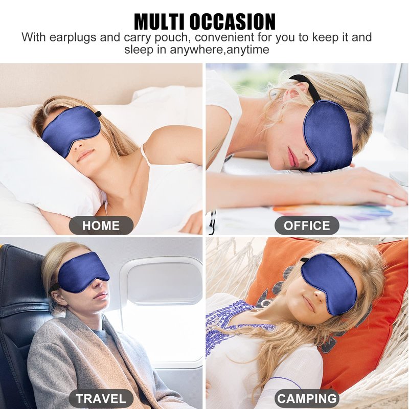 - 【Sleep Sound Anywhere & Anytime】Wear this incredibly lightweight, soft, comfortable sleep mask blindfold eye cover anywhere in bed, on flight, on the train or bus, while camping, yoga, meditation or self training. This travel eye mask provide you an relaxing sleep. With earplugs included to help reduce some noise. This cooling eye mask is perfect for Travel, Home, Flight, Train or anywhere where your sleep is bothered by light and noise.