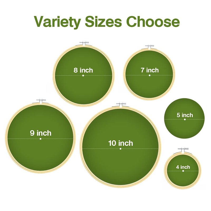 Caydo 6 Pieces Embroidery Hoop Set Bamboo Circle Cross Stitch Hoop Ring 4 inch to 10 inch for Embroidery and Cross Stitch