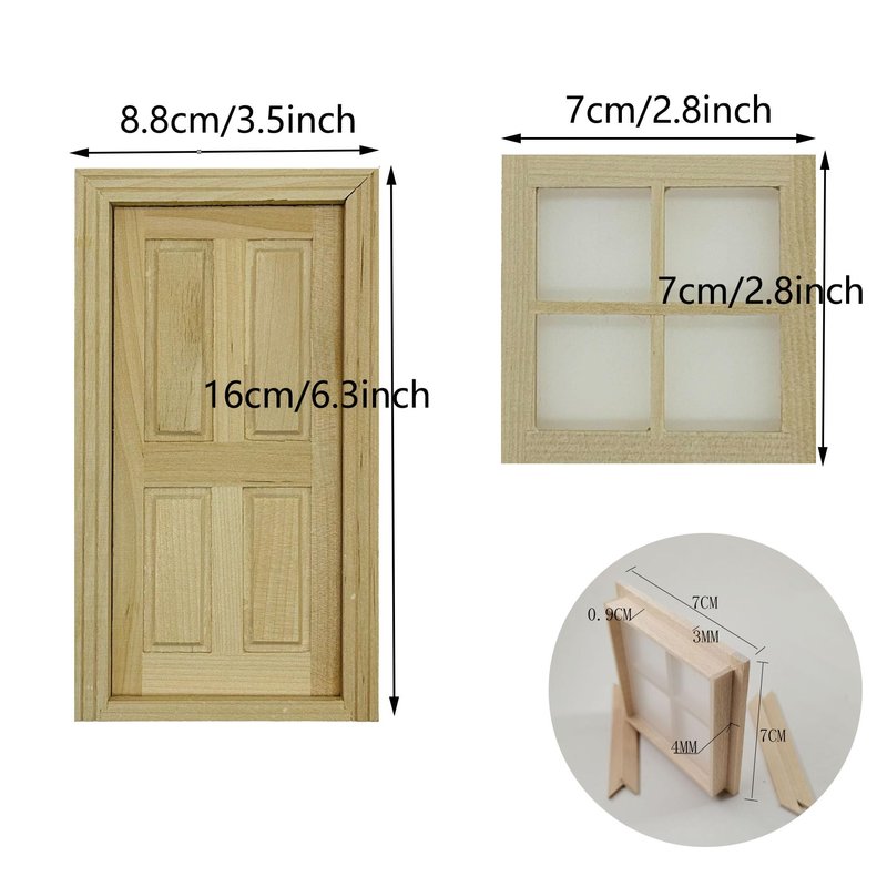 - Packaging includes: 2 PCS Wooden Windows,1 PCS Wood Door.