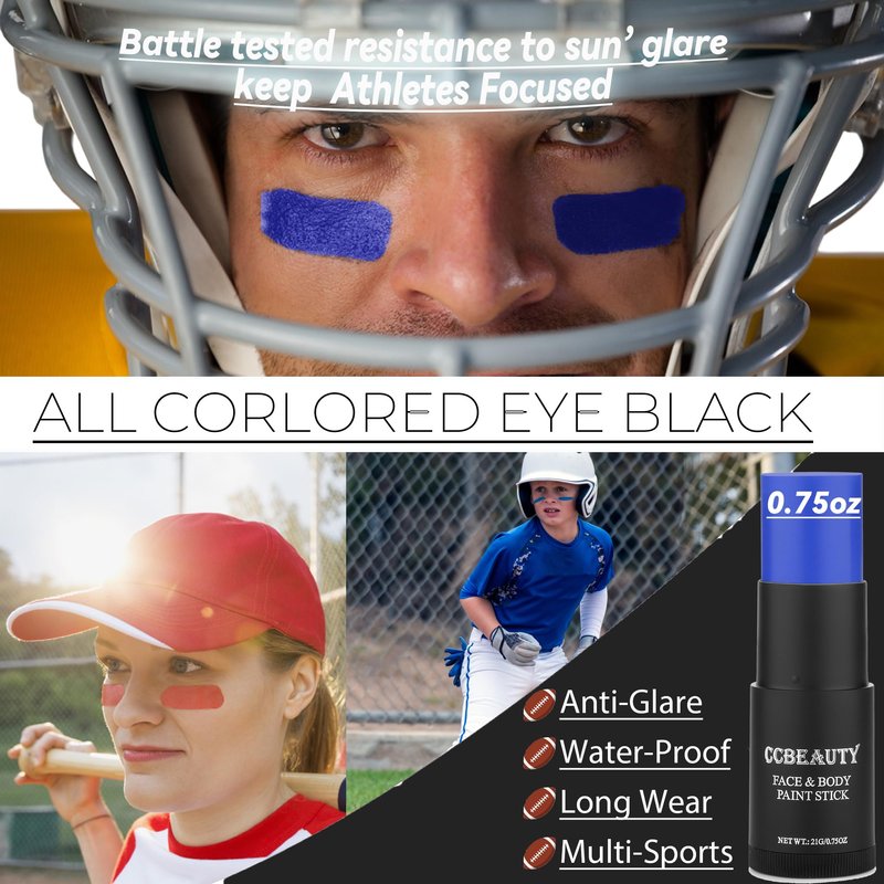 - 💗BLUE EYE BLACK for SPORTS - Buildable, blendable creamy formula that has extreme long wear,perfect for baseball softball footballs supplier. As with any professional grease cream makeup,it NEVER DRIES OUT completely like water-activated paint. We highly recommend to seal it with translucent powder to make it get long wear and less transferring and smudging, and last hours at a hot convention
