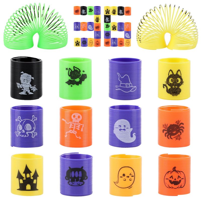 - Funny Halloween Toys: You will get 36pcs mini spring toys with Halloween theme pattern and bright colors for Halloween party. Each magic spring is 1.3inch in size with 12 different patterns.