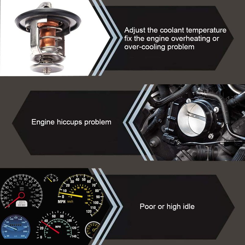 • Feature:Thermostat controls the temperature levels depending on the vehicle's driving conditions/load,Fix the check engine light issue and no engine hiccups problem and engine overheating or over-cooling problem.