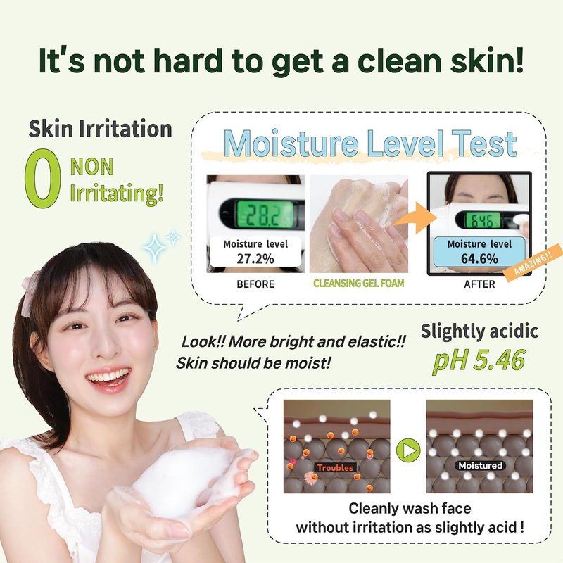 - 🌿Mild 2 in 1 gel cleanser that removes the waste and moisturized the skin with concentrated a clear gel.