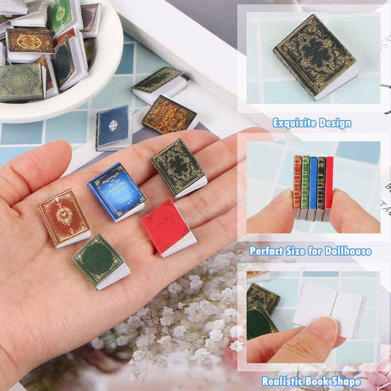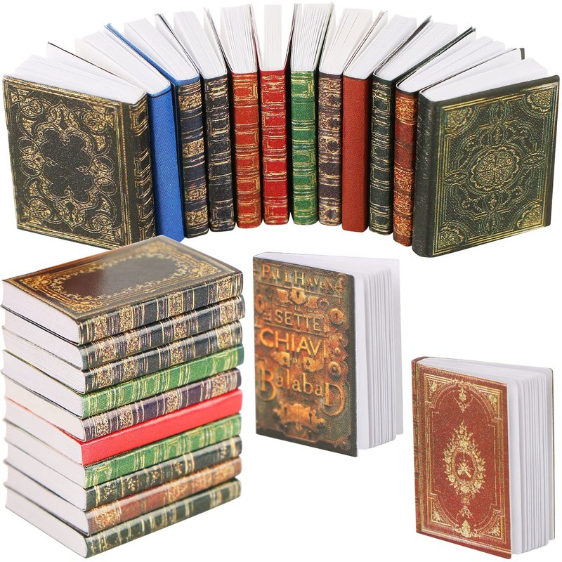 - Package Includes: 24 pcs mini 1:12 scale miniature dollhouse books in different styles. Enough tiny books to decorate a mini beautiful dollhouse.