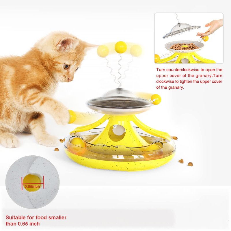 - 【Multiple funny cat stick design】 The top of the kitty toys is designed with a interactive cat stick with spring,and two interactive cat balls are designed on both sides of the middle turntable.The cat can make the turntable rotate by flipping the interactive cat stick.provides hours of exercise & self-amusement for health care and elimination of boredom and pet depression since your cat can play alone when master is not at home.