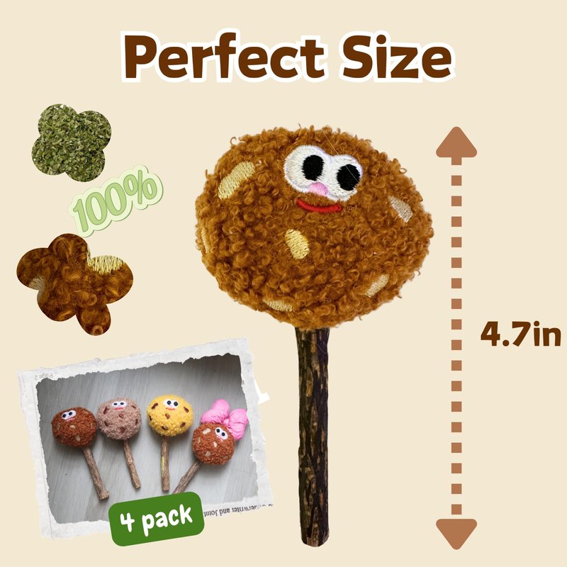 - 🍭 Cute Cookie Lollipops for Cats: The package contains 4 lollipop cat toys, each stuffed with catnip and featuring a silvervine stick. The 4.7x2.7 inch lollipop is perfect for interactive play—ideal for indoor cats for teeth cleaning, biting, chewing, licking, chasing, and kicking.