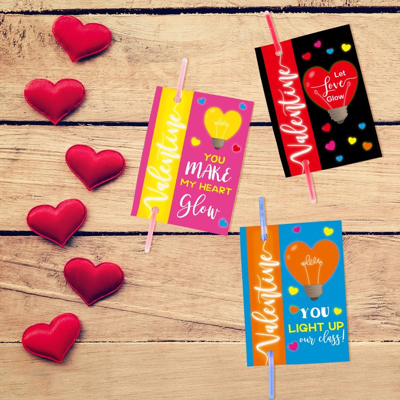 Valentines Day Cards with 32 Glow Sticks Kids Valentine Exchange Classroom School Party Favors Supplies