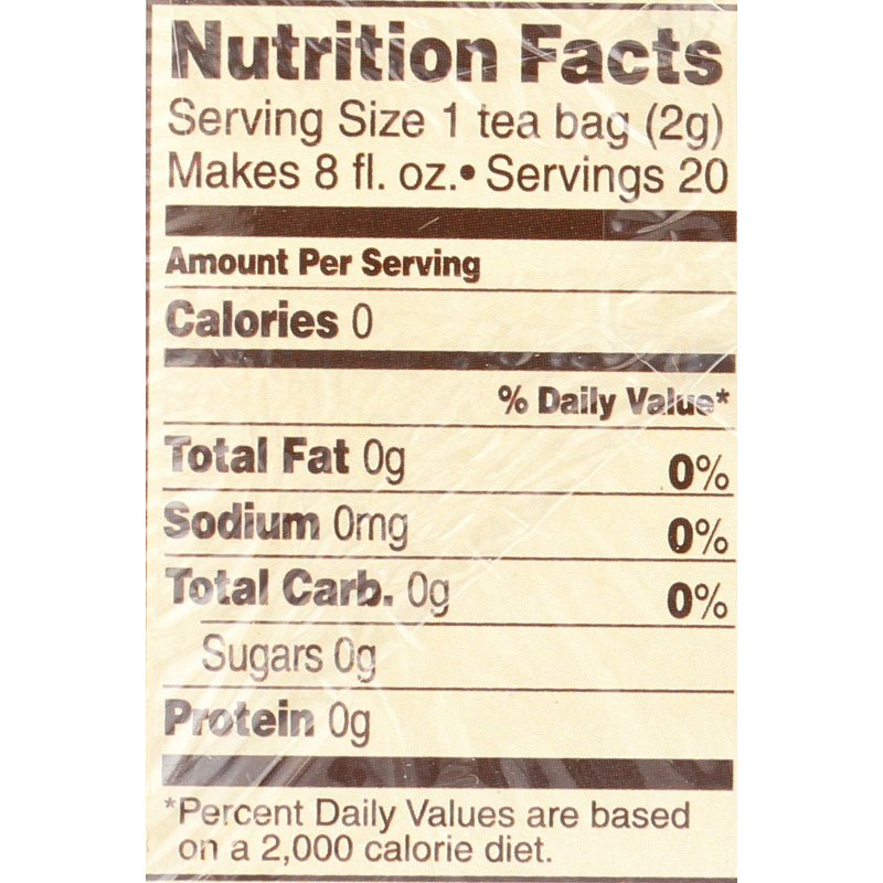 CONTAINS GLUTEN. NATURALLY CAFFEINE FREE. 20 HERBAL TEA BAGS.