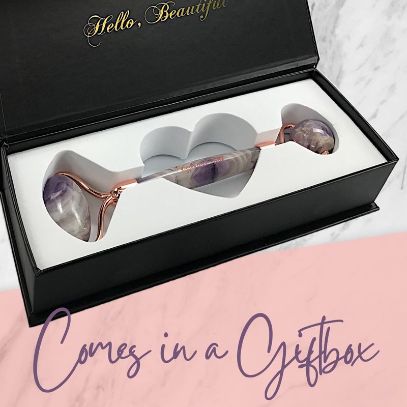 - Rejuvenating Amethyst Roller – This spa face roller utilizes all-natural amethyst gemstones that gently glide over your skin under the eyes, along the jawline, and across the cheeks or forehead to improve restore soft, healthy, radiant skin