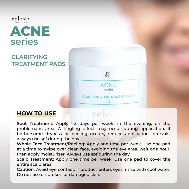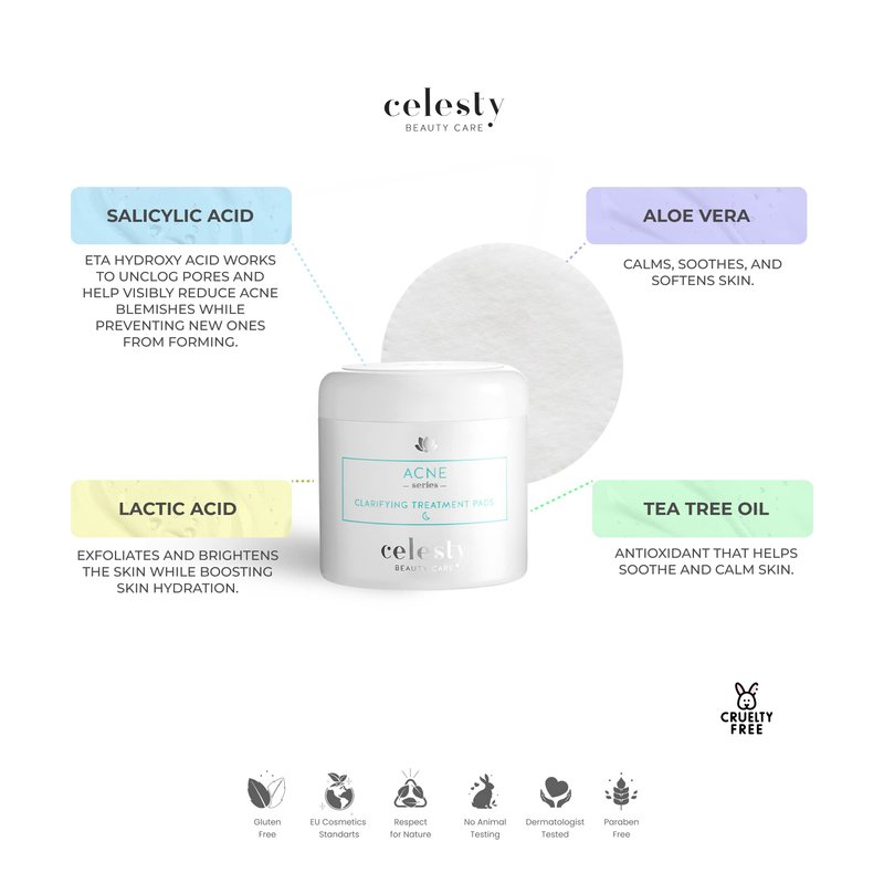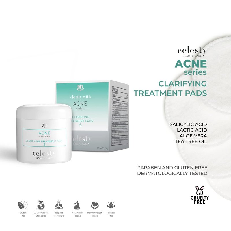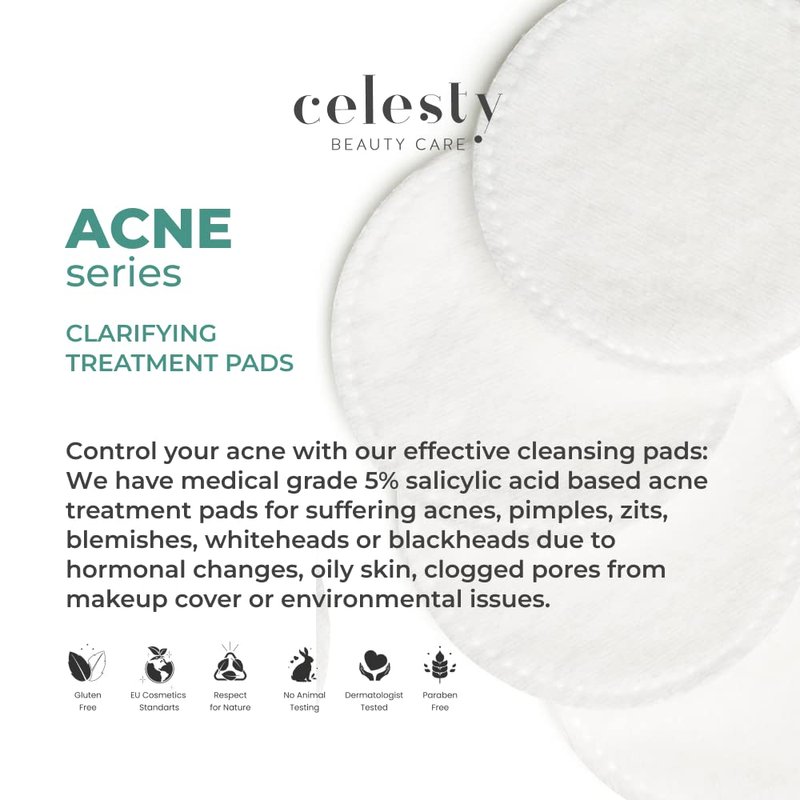 Celesty Beauty Clarifying Acne Treatment Pads Salicylic, Lactic - Acids Antioxidant Boosting Skin Hydration Pads