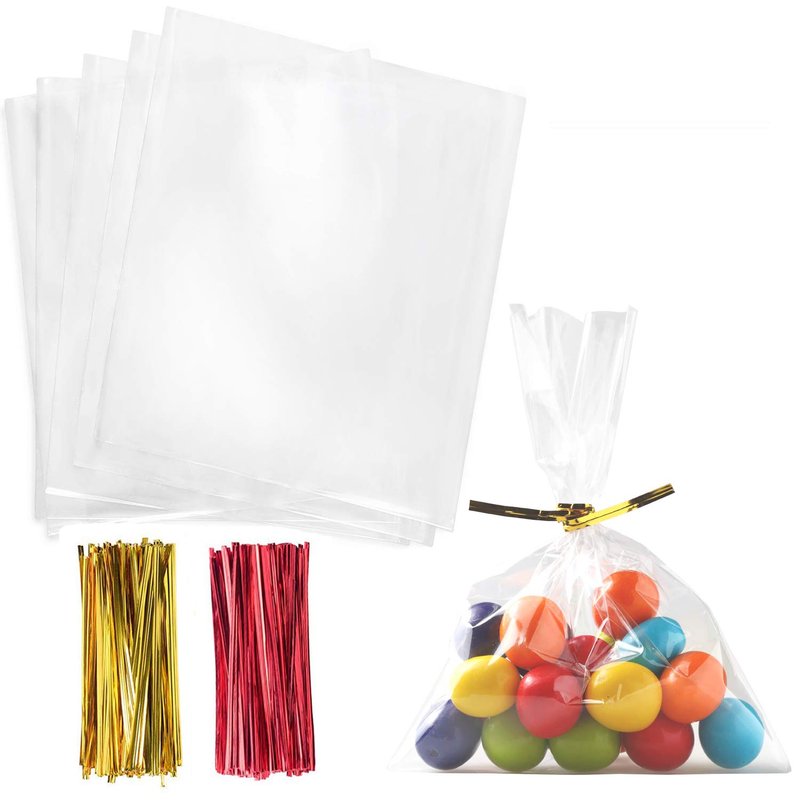 - ✅【What You Will Get】Totally 200 PCS clear cellophane treat bags are 5x7 inches on package,come together with 200 twist ties 2 mix colors(red and yellow), our small plastic bags are the supreme choice to dress up your treats, bakeries, crafts,gift wrapping beautifully and will instantly brighten up your parties and events or boost up your sales.