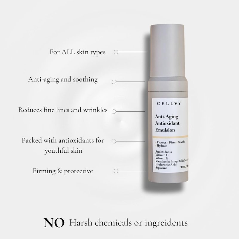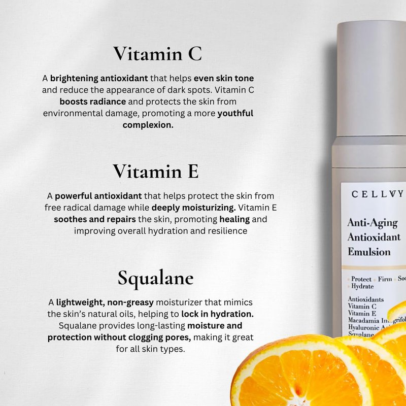 CELLVY Anti-Aging Antioxidant Emulsion with Hyaluronic Acid, Vitamin C & E, Hydrating, Nourishing, & Firming Face Lotion, Smooths Fine Lines & Wrinkles and Boosts Collagen Production
