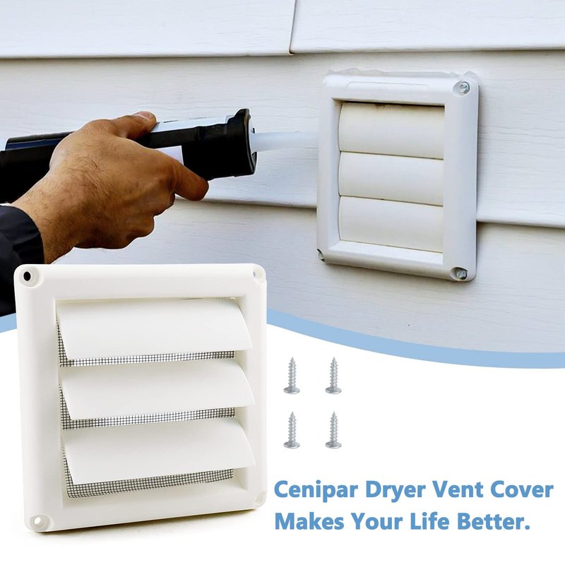 Cenipar 4" Dryer Vent Cover for Exterior Wall Vent Hood Outlet with Screen Includes 4 Screws 4" Dryer Vent Cover (White)