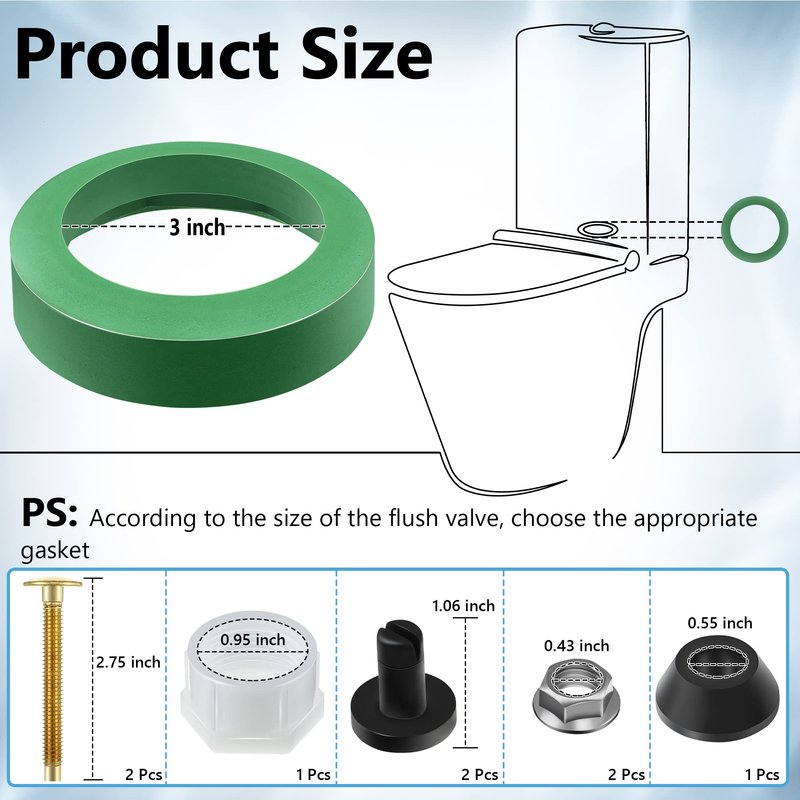 - Seal Design: the toilet gasket kits have been specially designed in terms of material and shape, taking into account the structure of the tank, which is prone to leaks, from the material: the washers are made of sponge rubber and are more nonslip; In terms of shape: the bolts are tapered for a better fit in the water tank; In addition to this function of preventing leaks, the rubber gasket material is also long lasting and better for cleaning